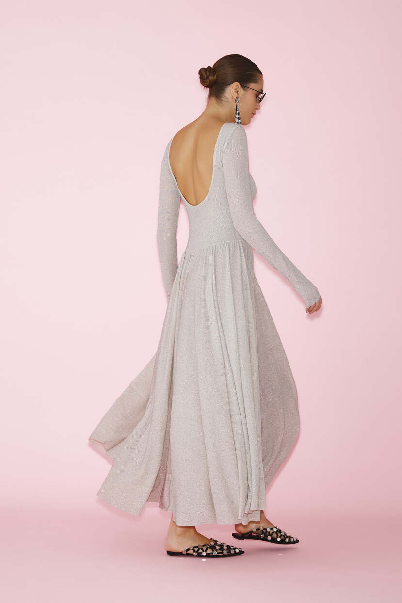 HOME - CLOTHING - Dresses - Midi-Beige Glitter Midi Dress