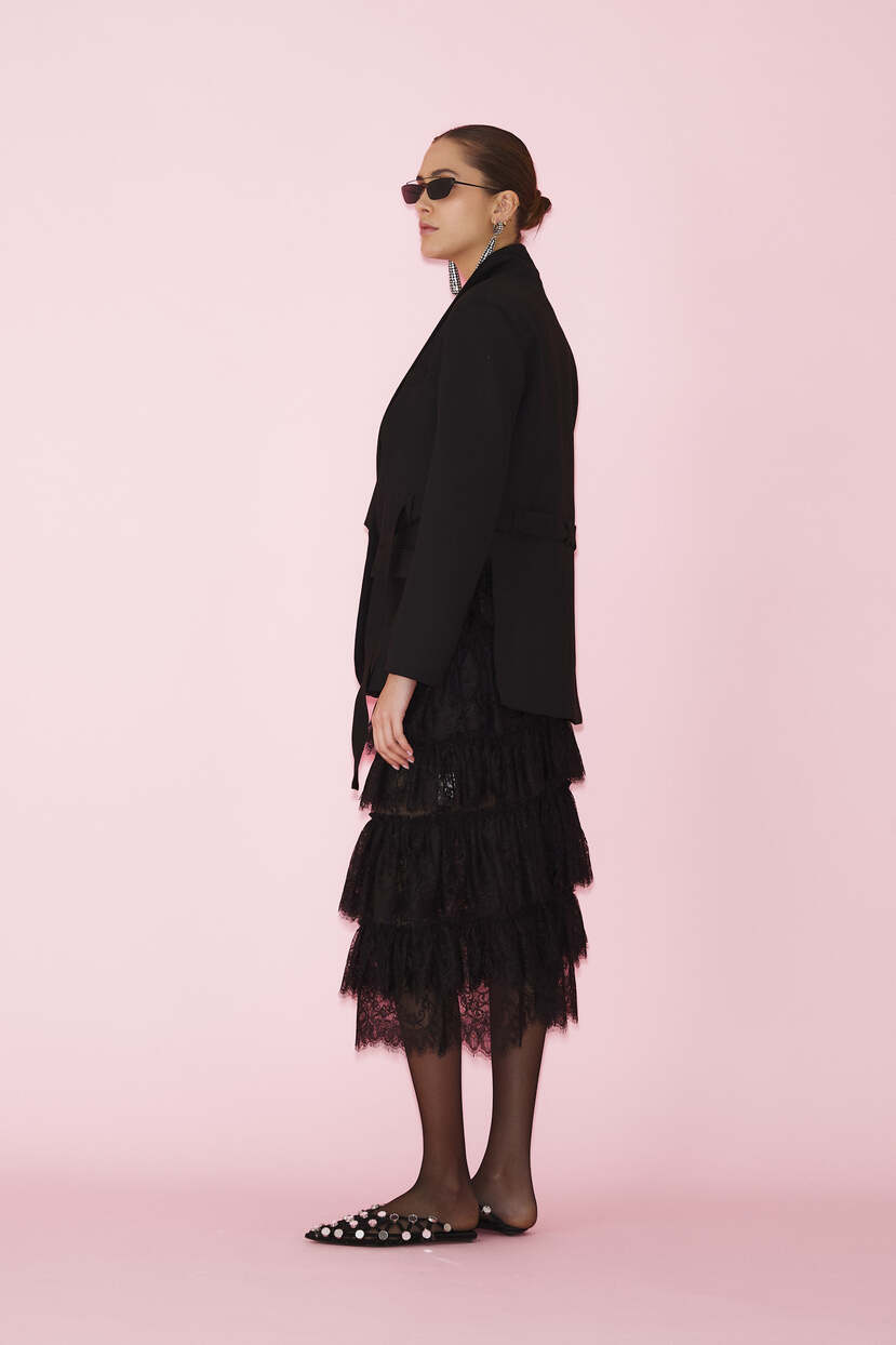 HOME - CLOTHING - Jackets - Blazers-Black Cutout Blazer White Belt