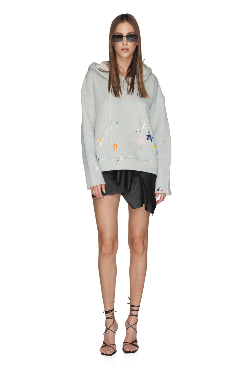 HOME - CLOTHING - Skirts - Mini-Black Leather Mini Skirt With Ruffle - SS24