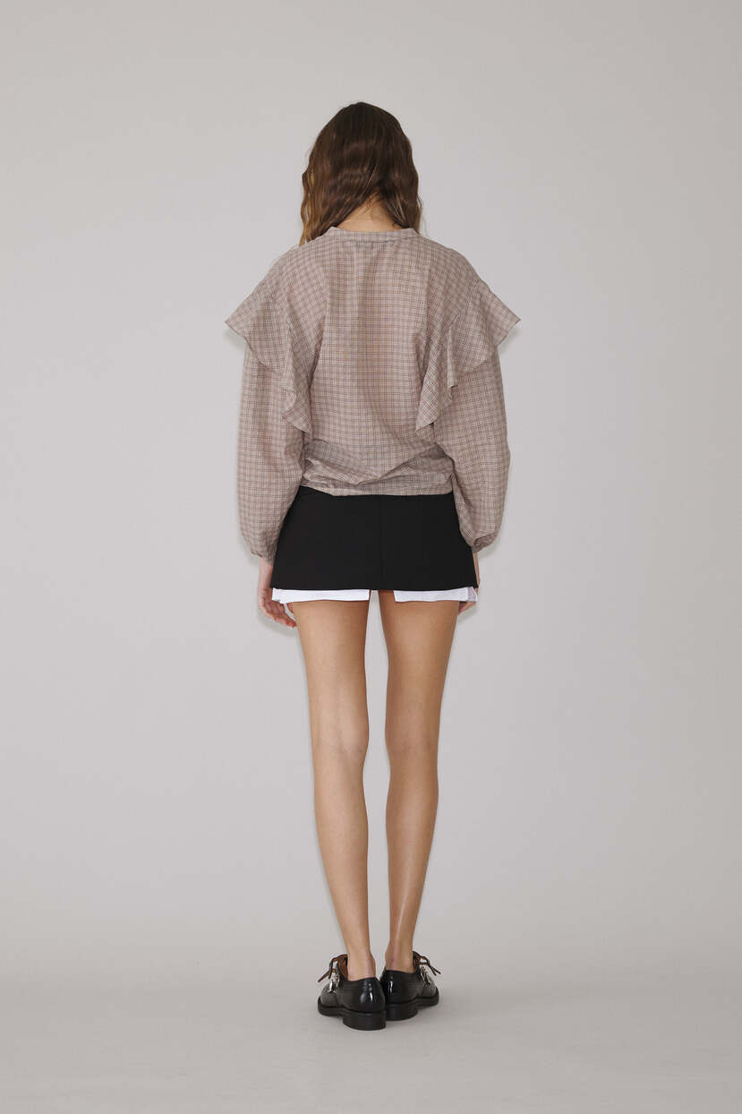 Brown Checkered Blouse With Ruffles