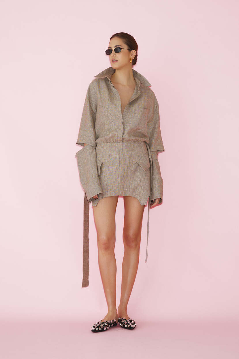 HOME - CLOTHING - Dresses - Mini-Brown-Gold Mini Dress with Corset Skirt