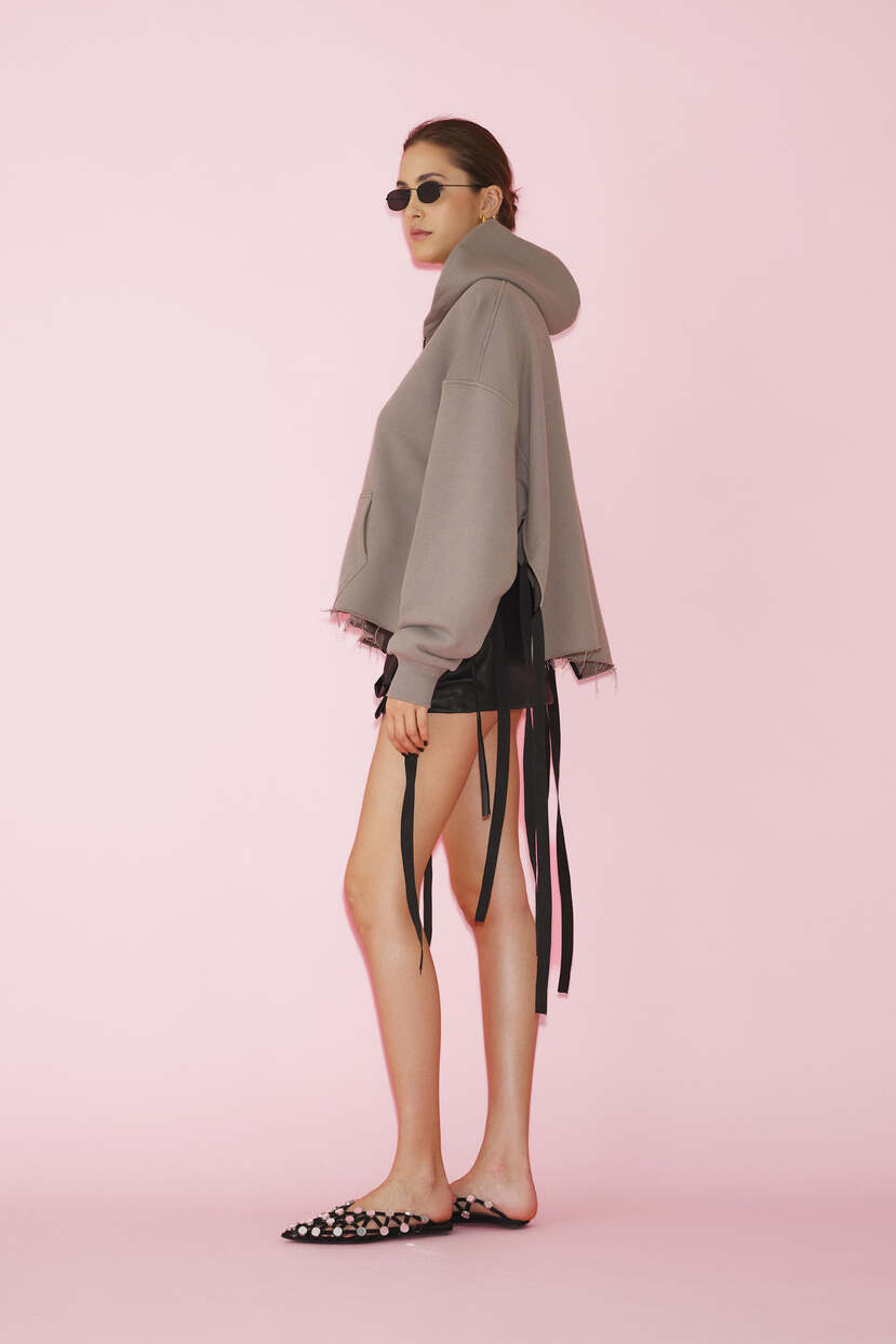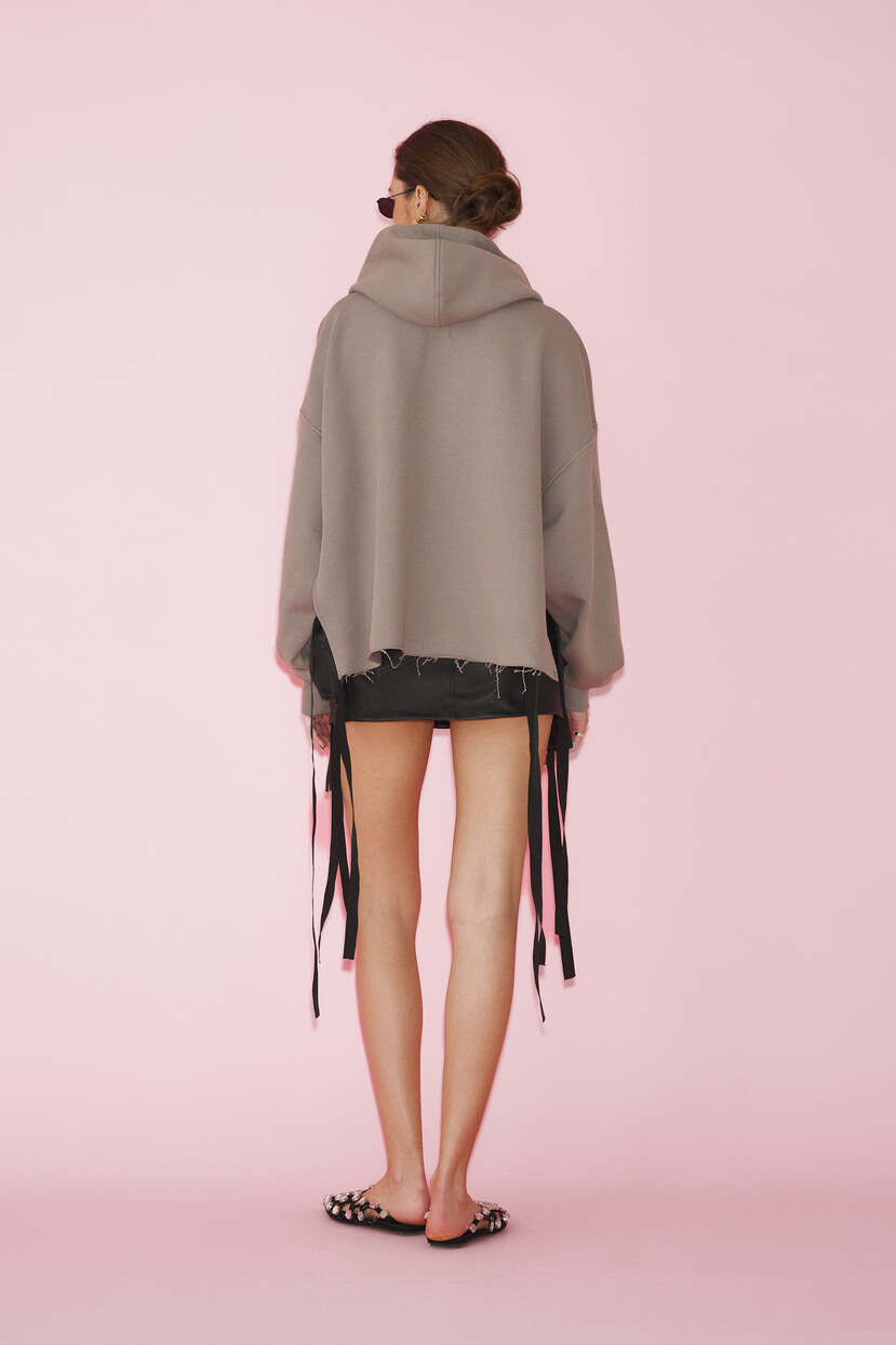HOME - CLOTHING - Tops - Sweatshirt-Cotton Brown Cutout Hoodie