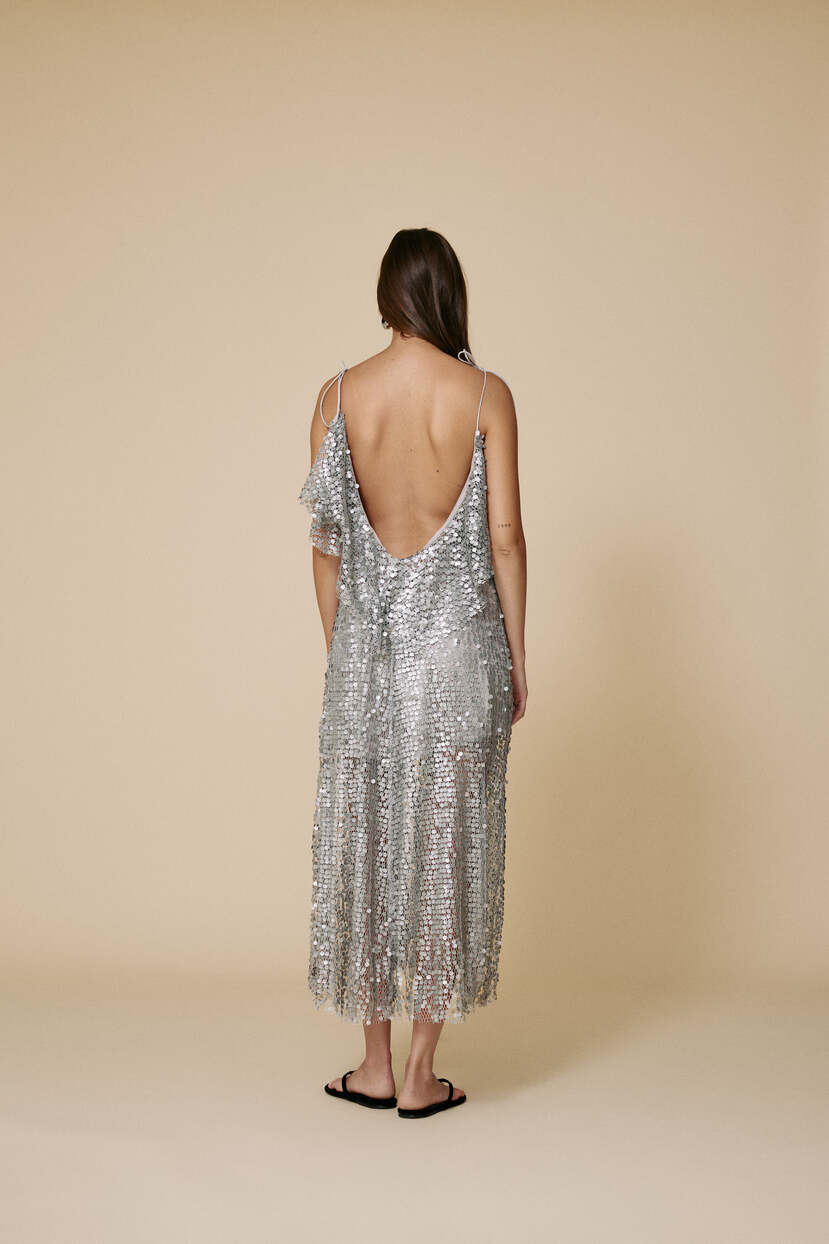 HOME - CLOTHING - Dresses - Midi-Grey Sequin Midi Dress - FW25