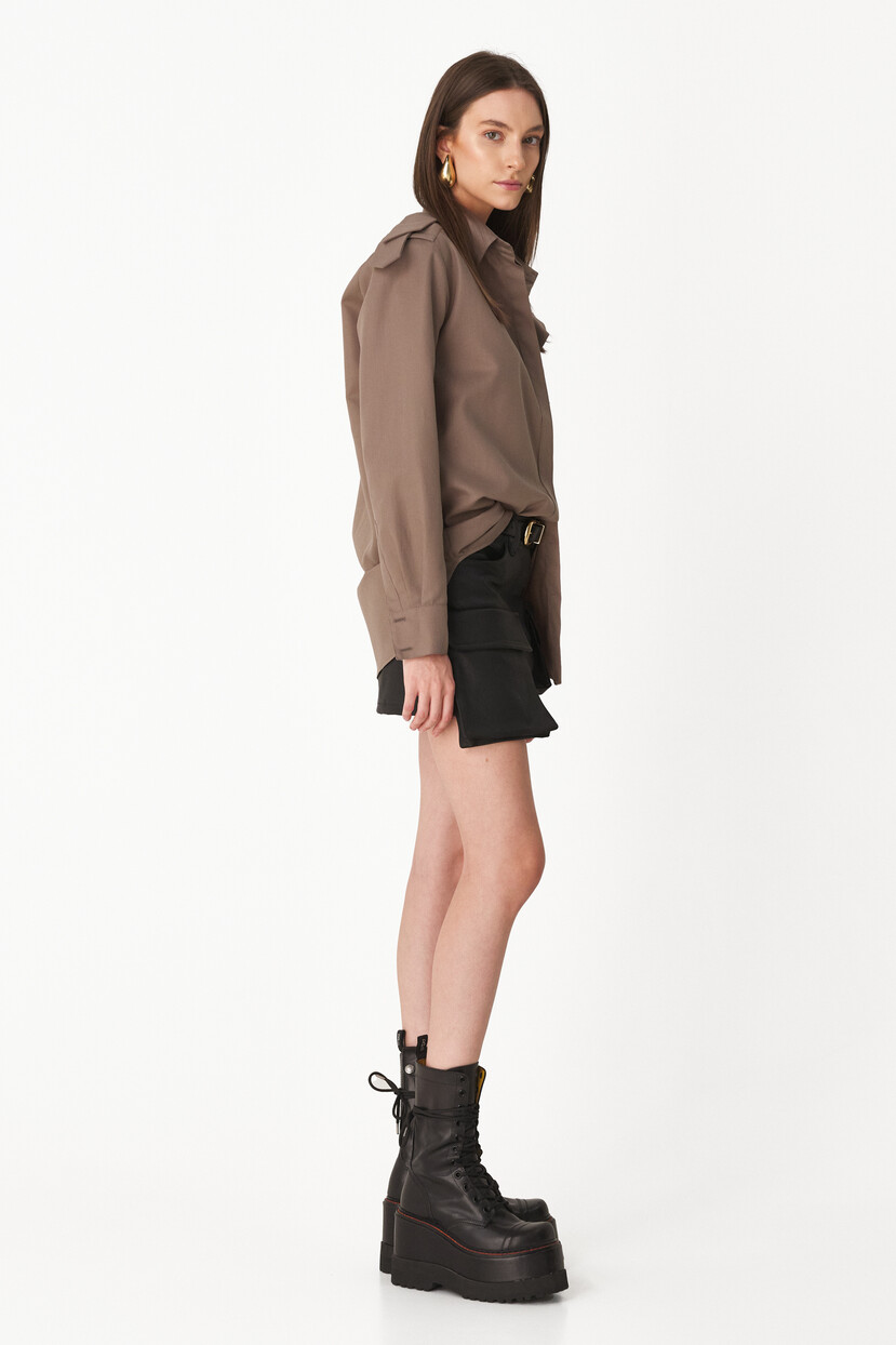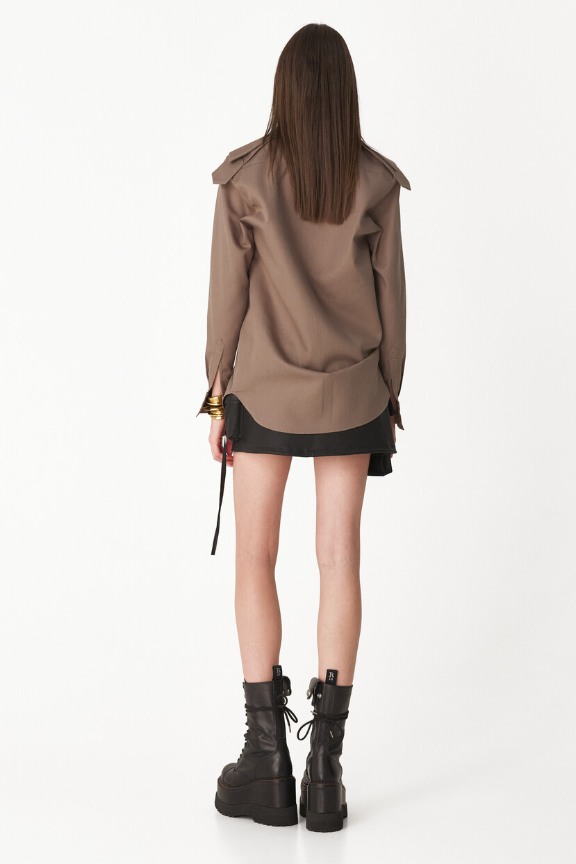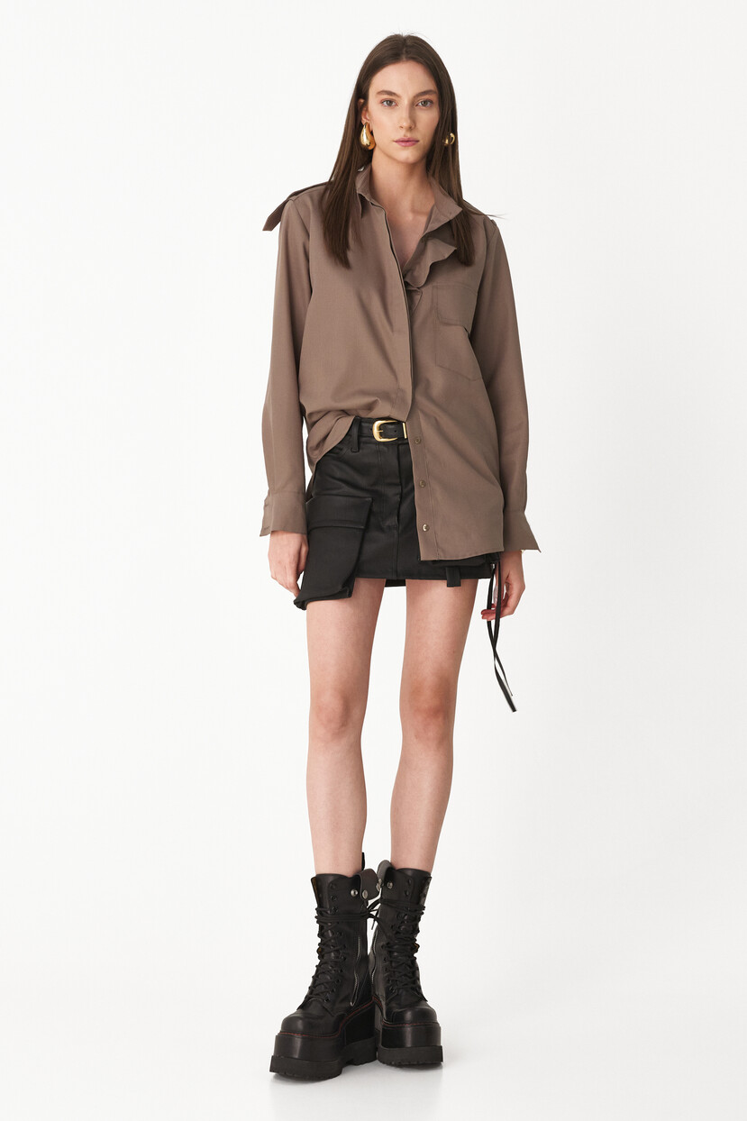 HOME - CLOTHING - Tops - Shirts-Kaki Cotton Shirt With Ruffled Detail