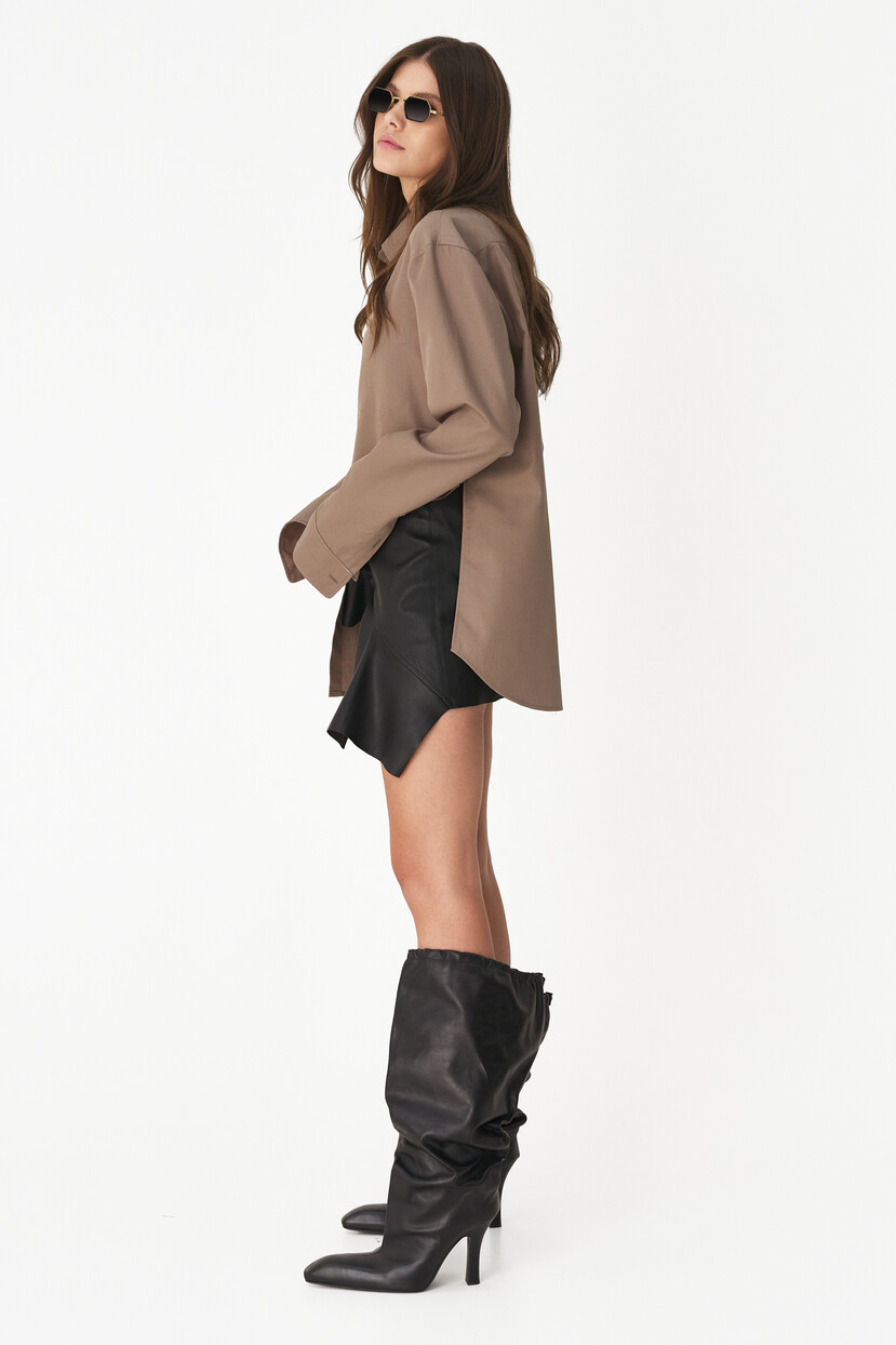 HOME - CLOTHING - Tops - Shirts-Kaki Cotton Shirt With Side Detail