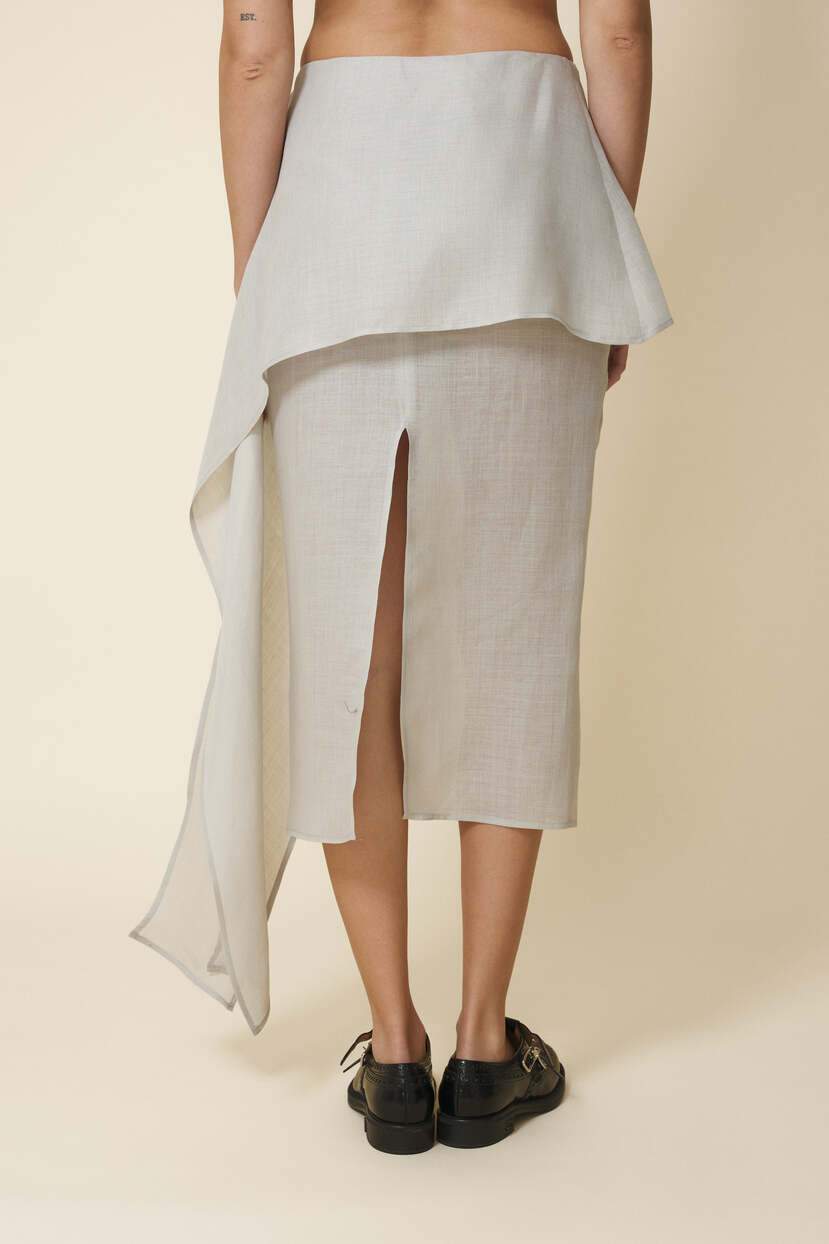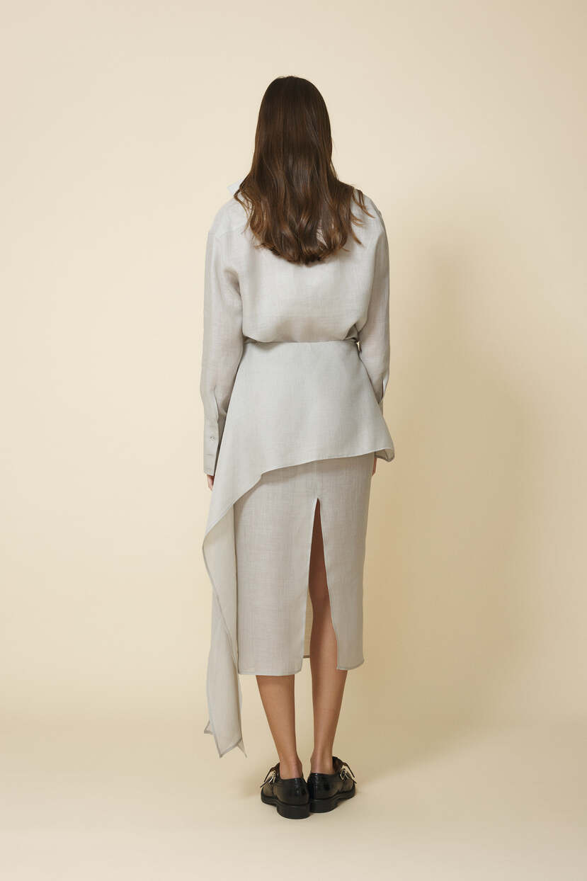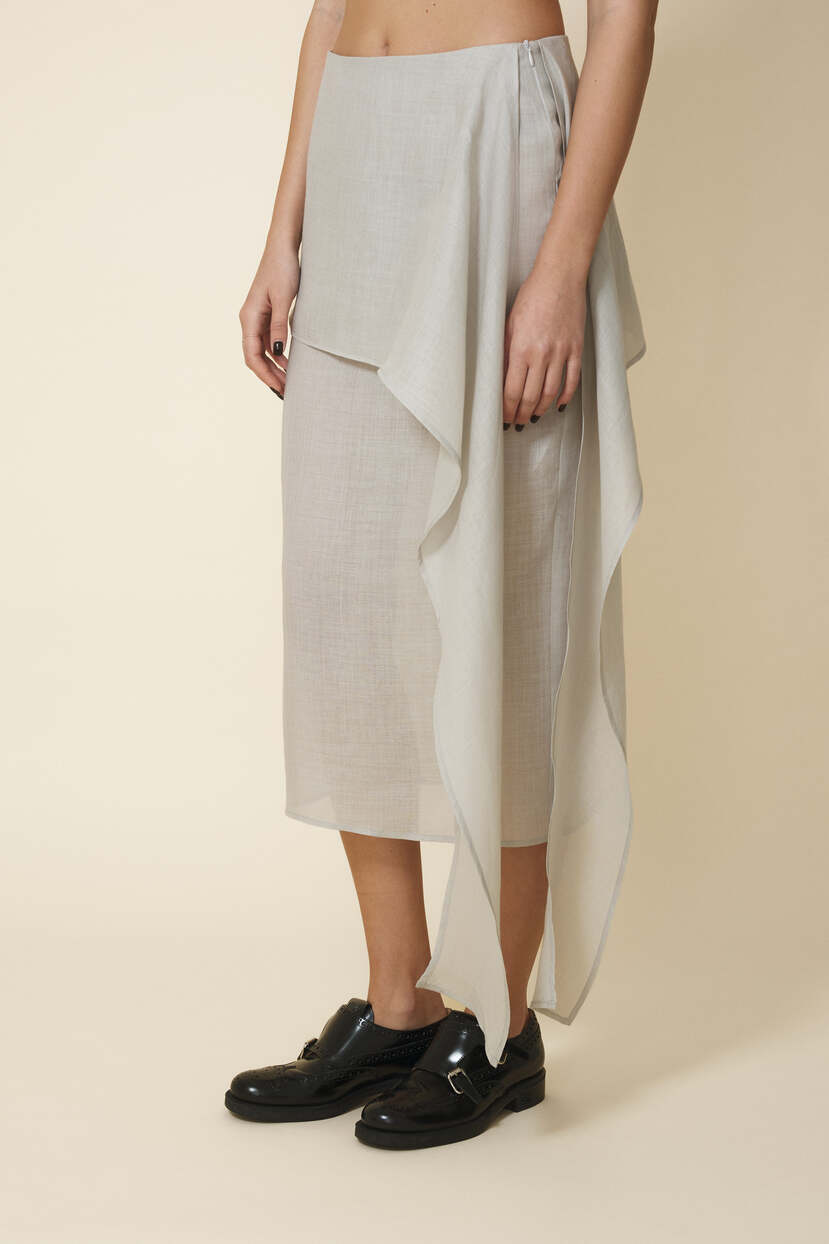 HOME - CLOTHING - Skirts - Midi-Light-Gray Midi Skirt With An Asymmetric Cut And Soft Side Draping - FW25