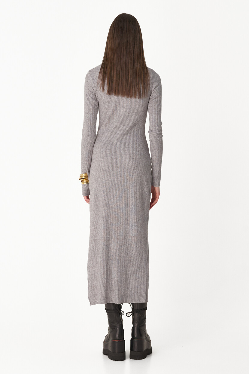 HOME - CLOTHING - Dresses - Maxi-Light Grey Maxi Dress With Long Sleeves