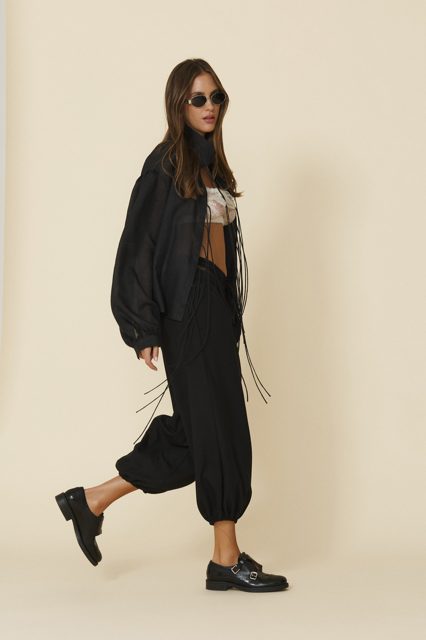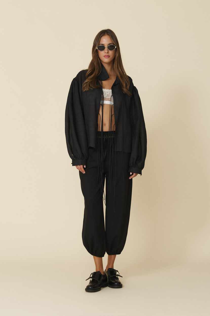 HOME - CLOTHING - Tops - Blouses-Loose-Fit Black Blouse With Voluminous Balloon Sleeves With Wide Cuffs - FW25