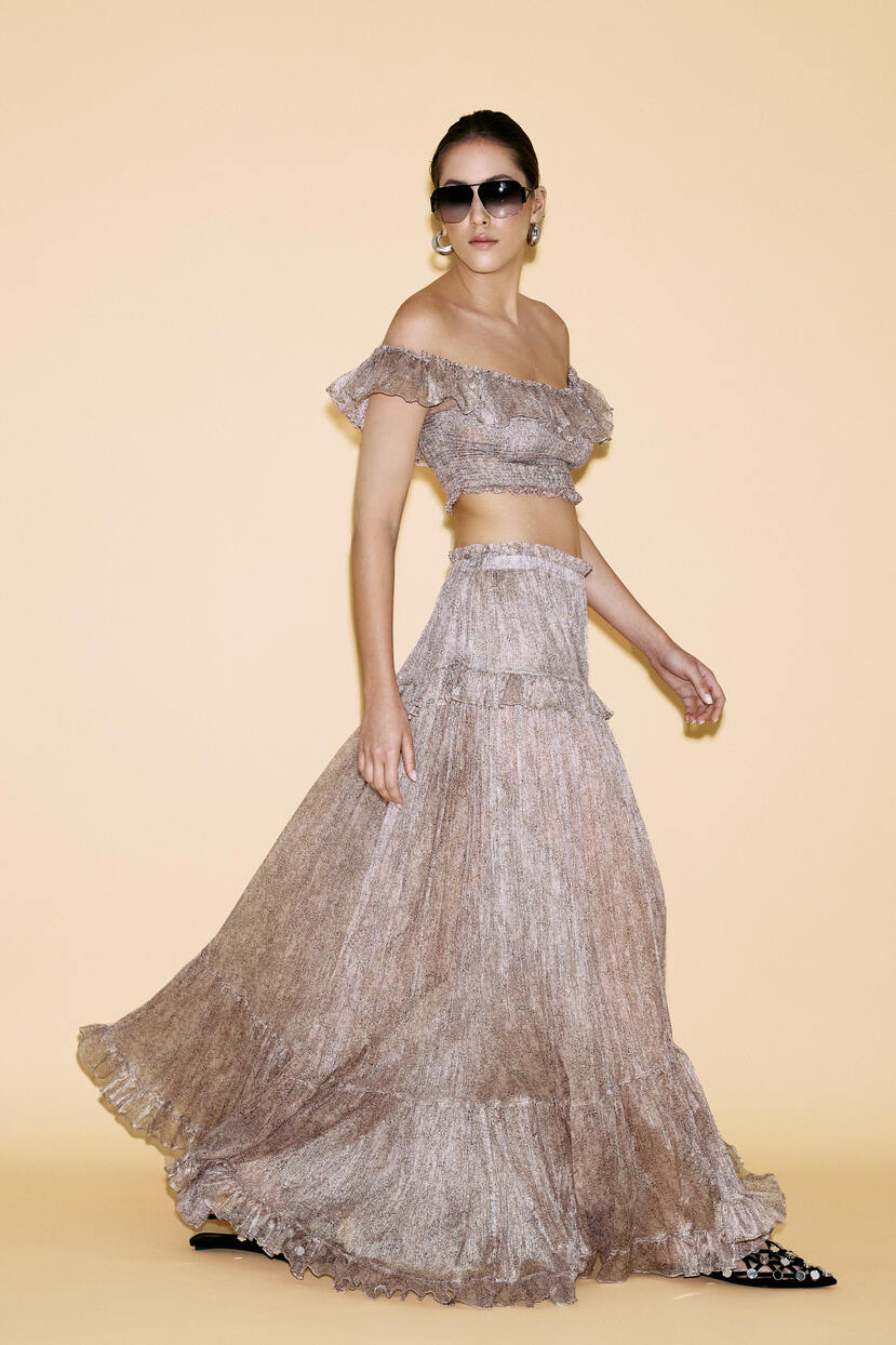 Printed Floral Rose Silk Maxi Skirt - SS24