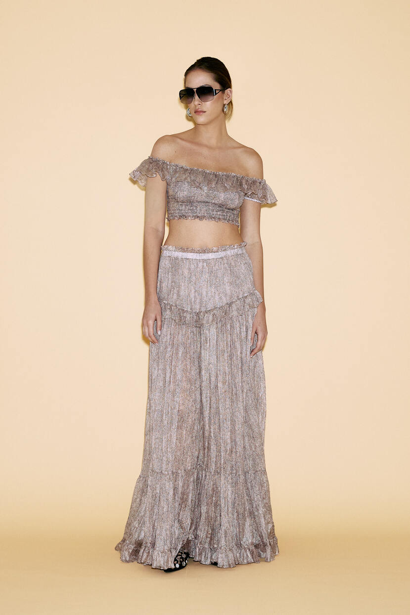 Model - Height:1.76/5'9'', Bust: 82/32'', Waist: 59/23'' Hips: 90/35'' and is wearing a french size 34.