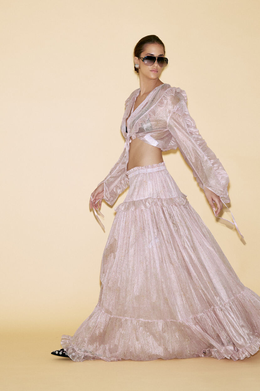 Model - Height:1.77/5'91/2'', Bust: 82/34'', Waist: 60/231/2'' Hips: 89/35'' and is wearing a french size 34.