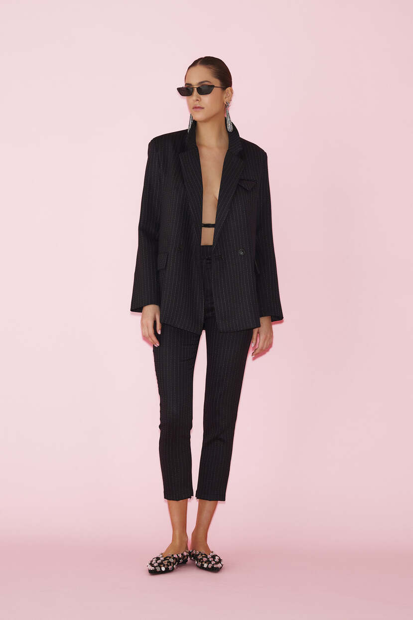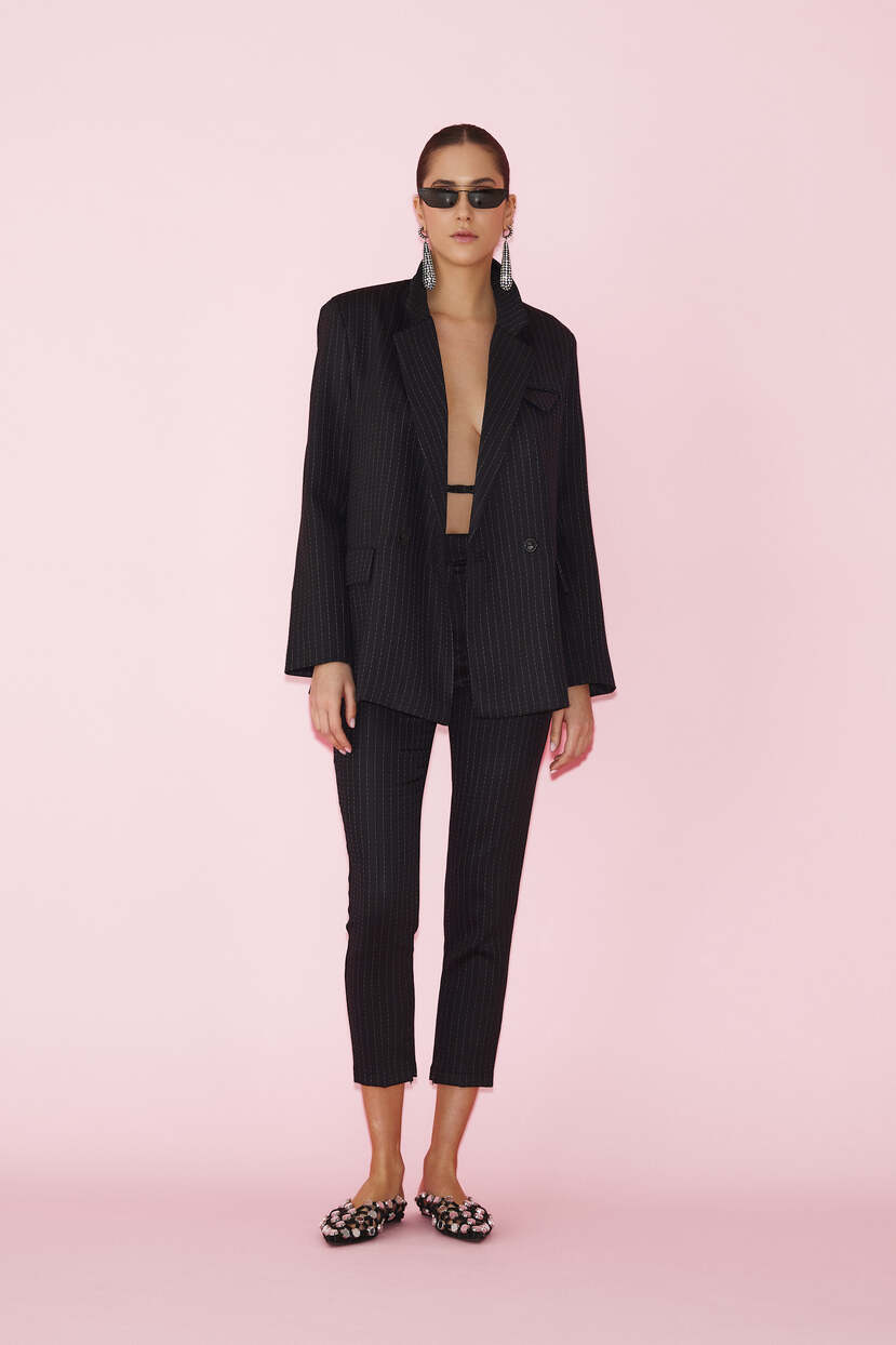 HOME - CLOTHING - Jackets - Blazers-Striped Blue Oversized Blazer