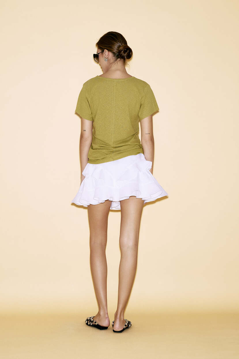 White Linen Ruffled Shorts