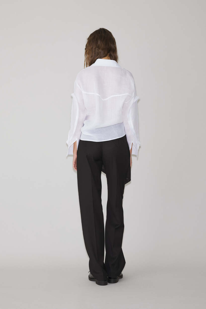 HOME - CLOTHING - Tops - Shirts-White Linen Shirt With Sleeves Details