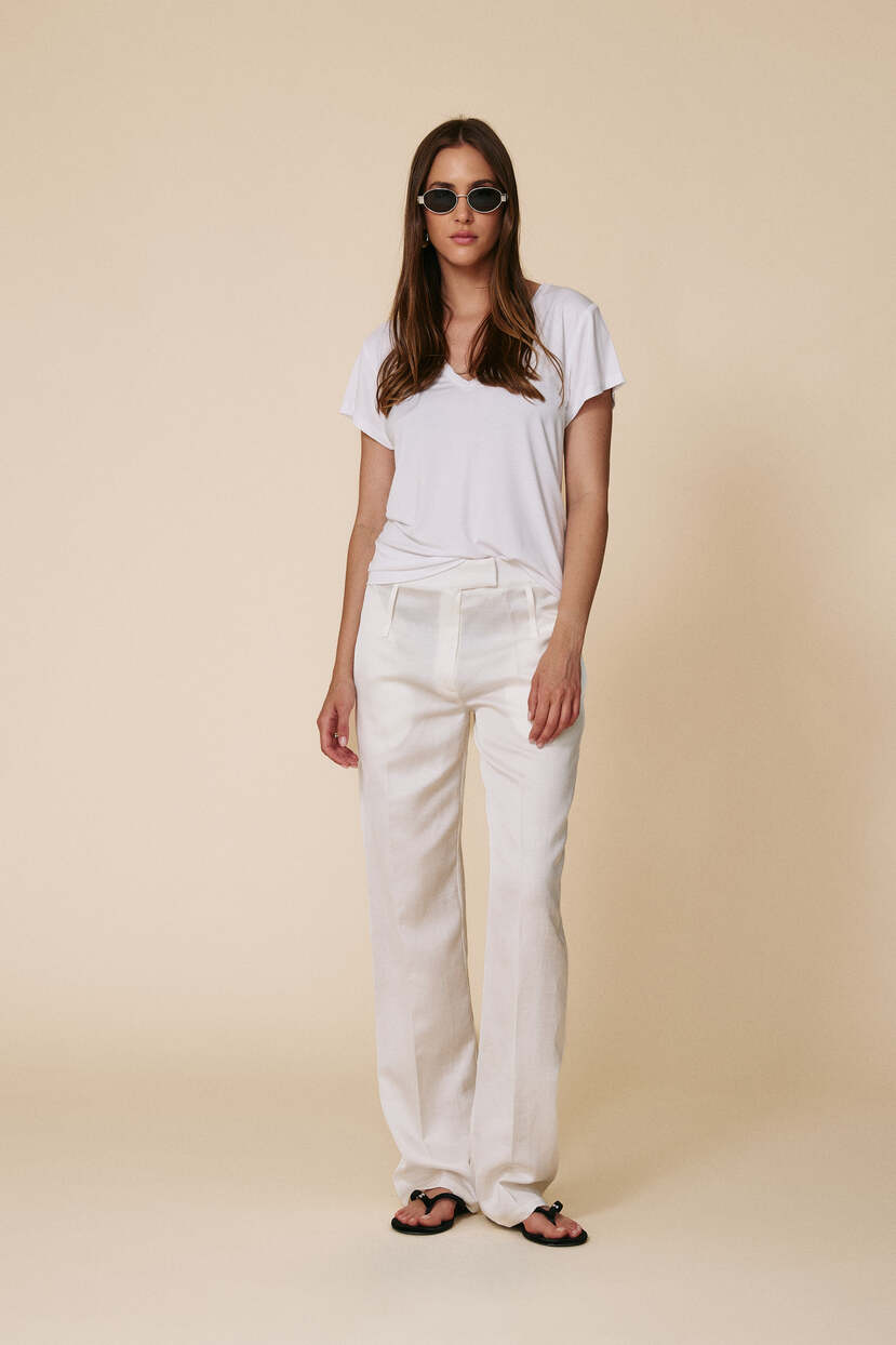 White Viscose "V" T-shirt