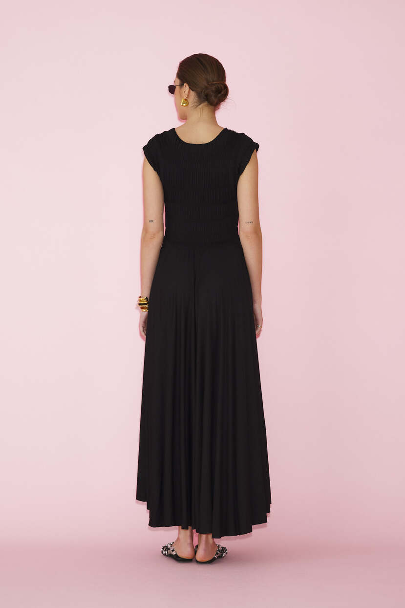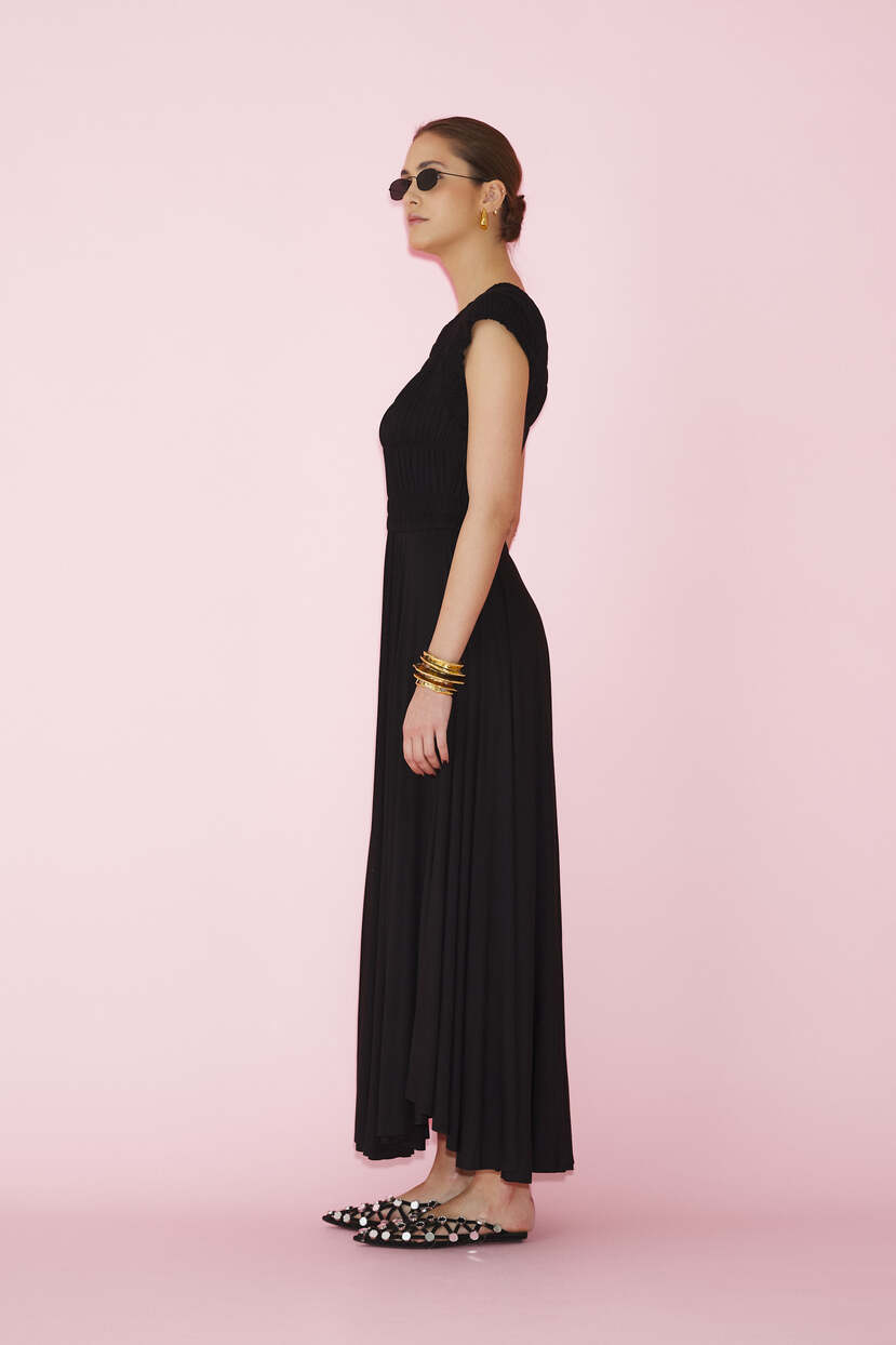 HOME - CLOTHING - Dresses - Midi-Wrap-Effect Black Midi Dress